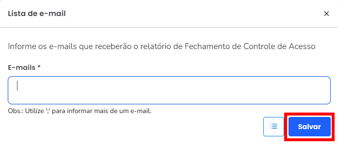 5.1. Informe os e-mails que irão receber o relatório e clique em “Salvar“;