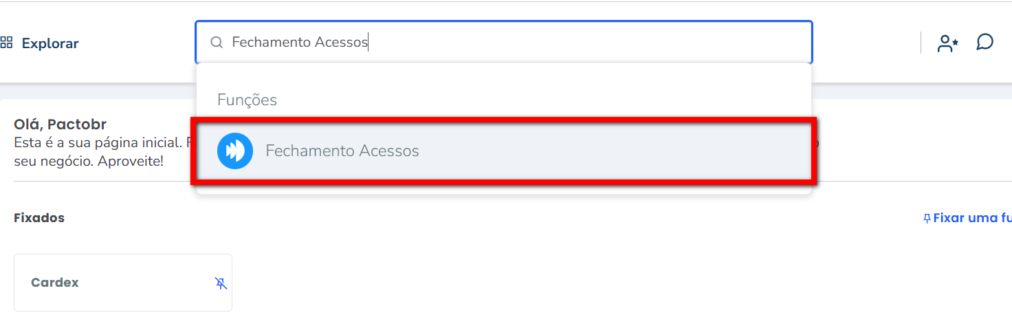1. Na lupa de busca do sistema pesquise por “Fechamento Acessos”;