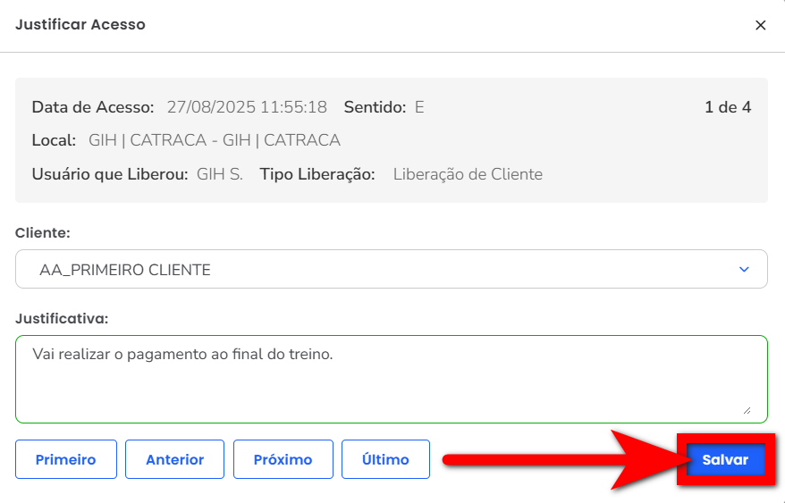 Observação: clicando em “Próximo“, caso tenha algum outro aluno que precise editar a justificativa informada anteriormente, basta clicar que o sistema irá apresentar o outro acesso a ser justificado.