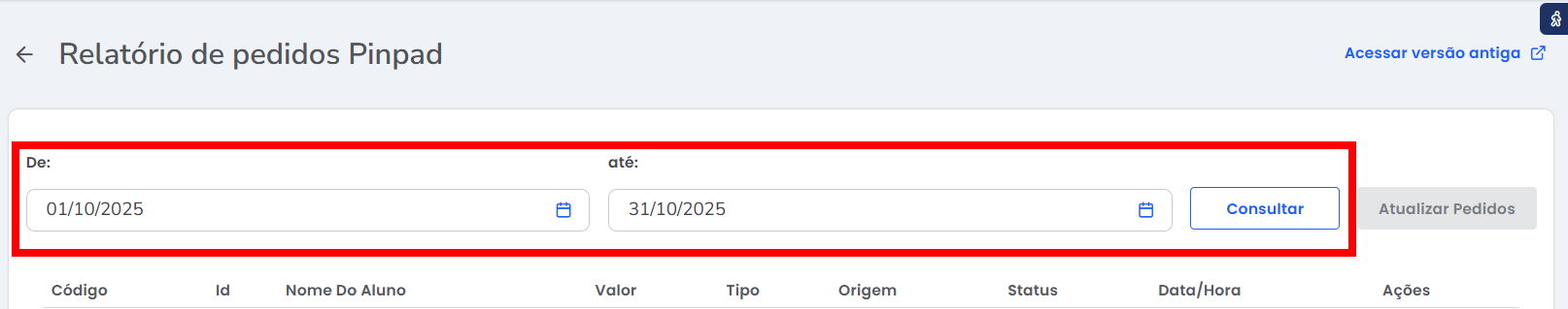 O relatório de Pedidos Pinpad foi criado com o intuito de apresentar todas as solicitações de cobrança realizadas pelo sistema para o Pinpad integrado. O Pinpad pode ser definido como um equipamento eletrônico de pagamento que faz a leitura de cartões e que conta com um teclado para que o cliente possa digitar a senha (se necessário) e, assim, validação da transação financeira. O Pinpad também é conhecido popularmente como maquininha de cartão.