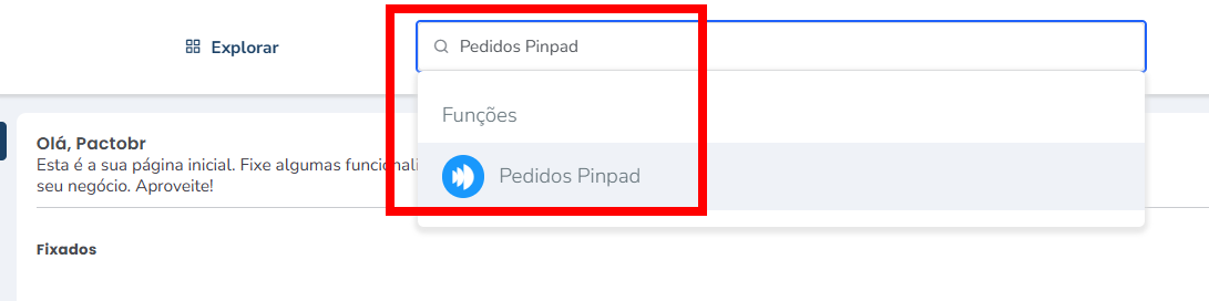 1. No módulo ADM, no campo de busca pesquise por “Pedidos Pinpad”;