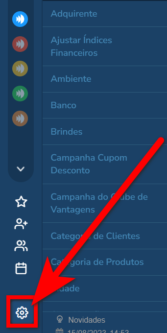 1. No menu lateral do sistema clique em “Engrenagem”;