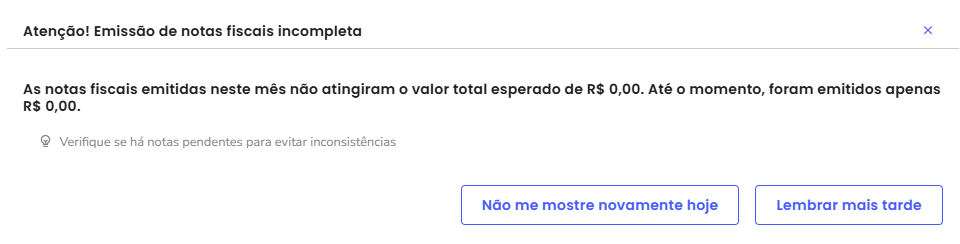 Meta valor mensal: neste campo pode adicionar um valor mensal desejado, para que ao acessar o sistema seja apresentado um pop-up informando que o valor da meta ainda não foi alcançado. Essa mensagem é apresentada todo dia 21 do mês, e só deixa de ser apresentada quando atingido o valor desejado, ou até o primeiro dia do próximo mês.