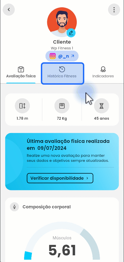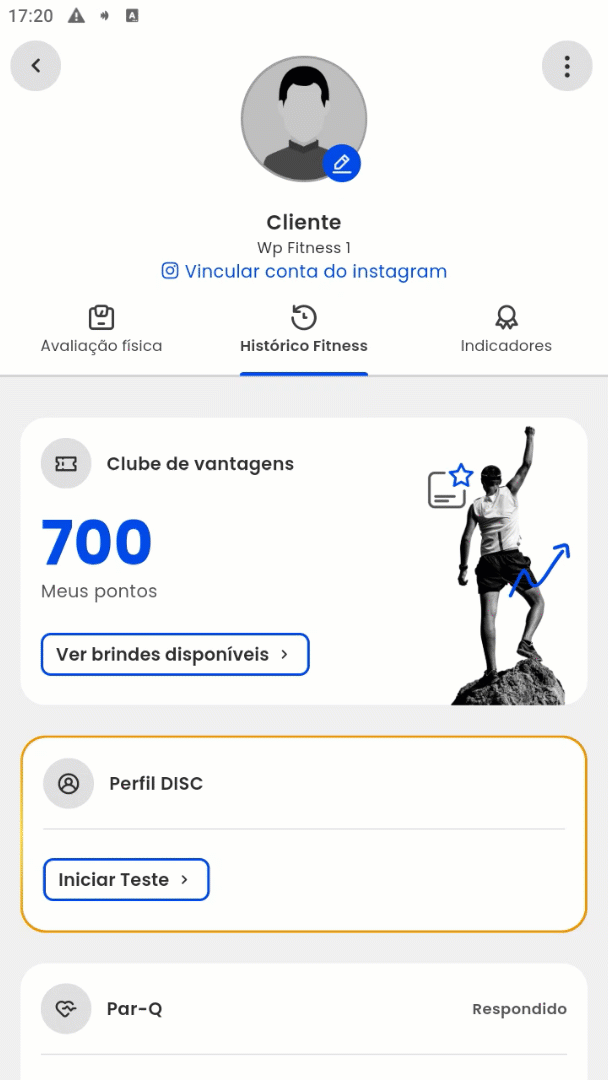 Por meio desse recurso, é possível visualizar o programa de treino atual, o histórico de atividades realizadas, os dias em que treinou e outras informações que ajudam o aluno a acompanhar seu desempenho ao longo do tempo.