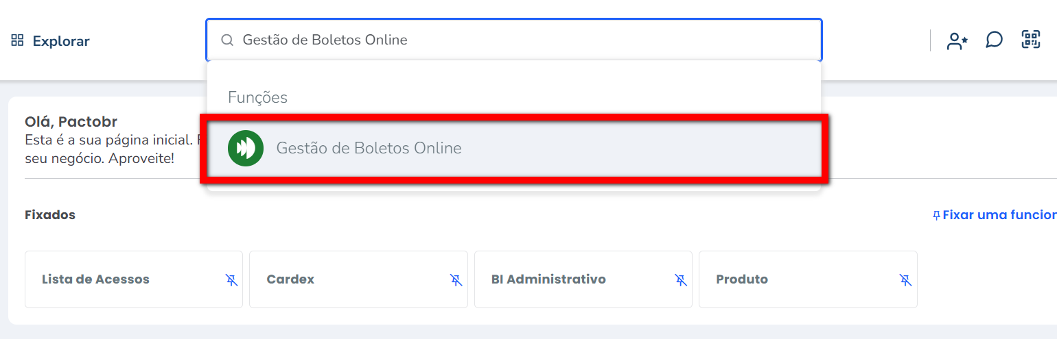 1. Na lupa de busca do sistema, pesquise por “Gestão de Boletos Online”;