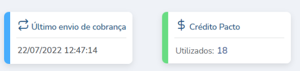 2.1. Na primeira parte da tela contém as informações de data de último envio de cobrança e a quantidade de créditos já consumidos ou a quantidade de créditos restantes (depende do contratado com a Pacto);
