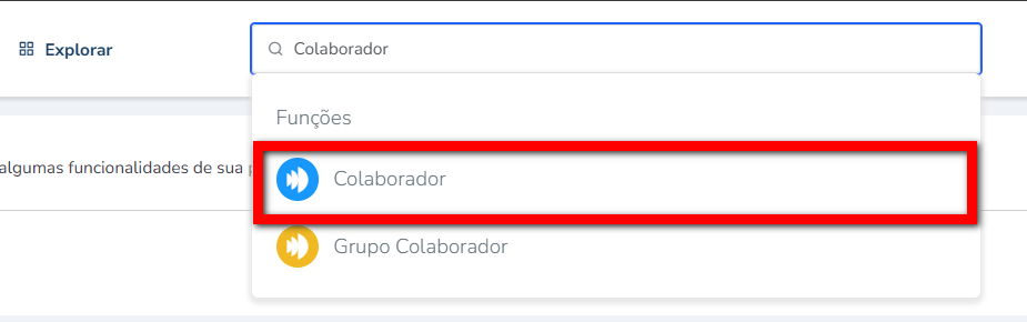 1. Na lupa de busca do sistema pesquise por "Colaborador";